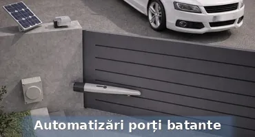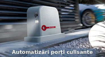 Esti in cautarea unui sistem automatizare porti sau a unui kit complet pentru automatizari porti? Iti stam la dispozitie cu solutii moderne pentru orice tip de poarta: batanta, culisanta sau autoportanta. Oferim produse originale si componente de top pentru automatizare porti – motoare automatizare porti culisante, automatizari porti culisante, bariere auto, telecomenzi, rulouri exterioare, usi de garaj, fotocelule, lampi de semnalizare si numeroase accesorii – toate asigurate de parteneri premium de renume, precum NICE, CAME, BFT si SOMFY. Indiferent daca vrei confort la domiciliu sau un sistem profesional pentru afacerea ta, echipa noastra iti ofera consultanta si suport tehnic dedicat.